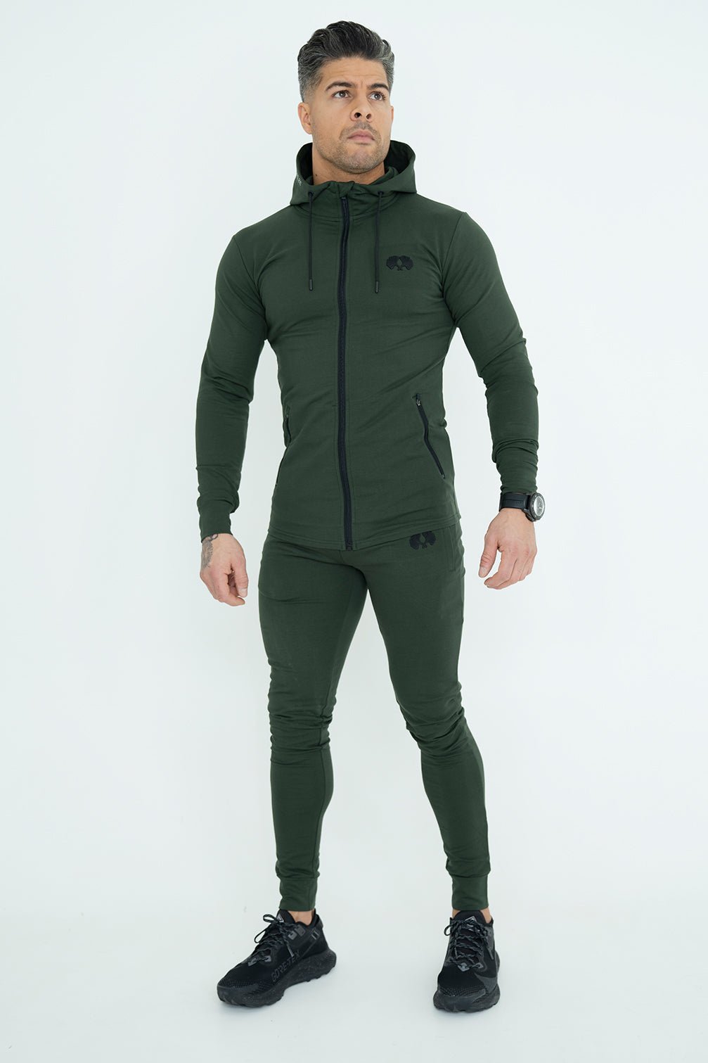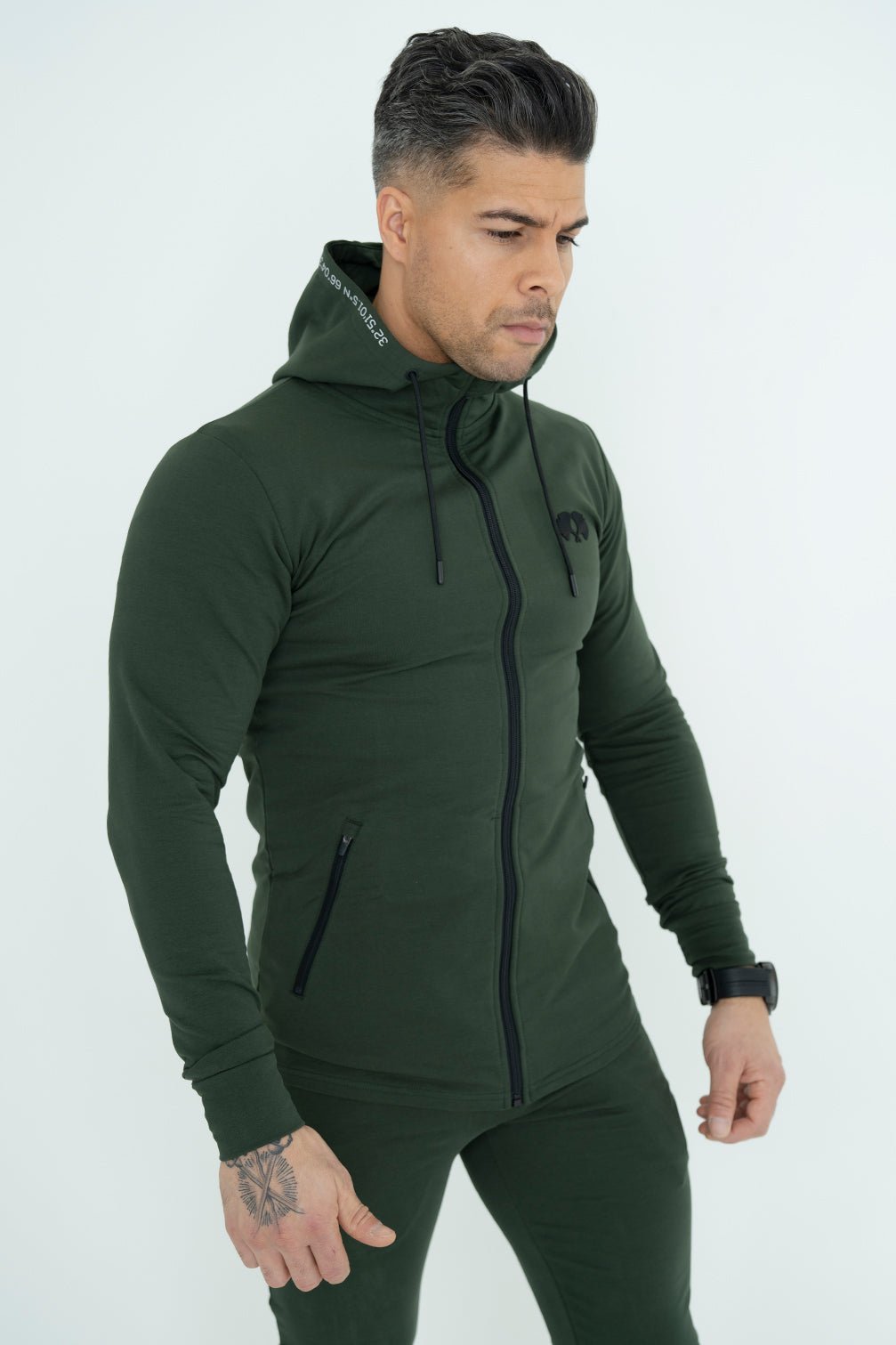 - Zippers with Logo - Black rubber Logo - Grid Code on the Hoodie - Side pockets with zippers